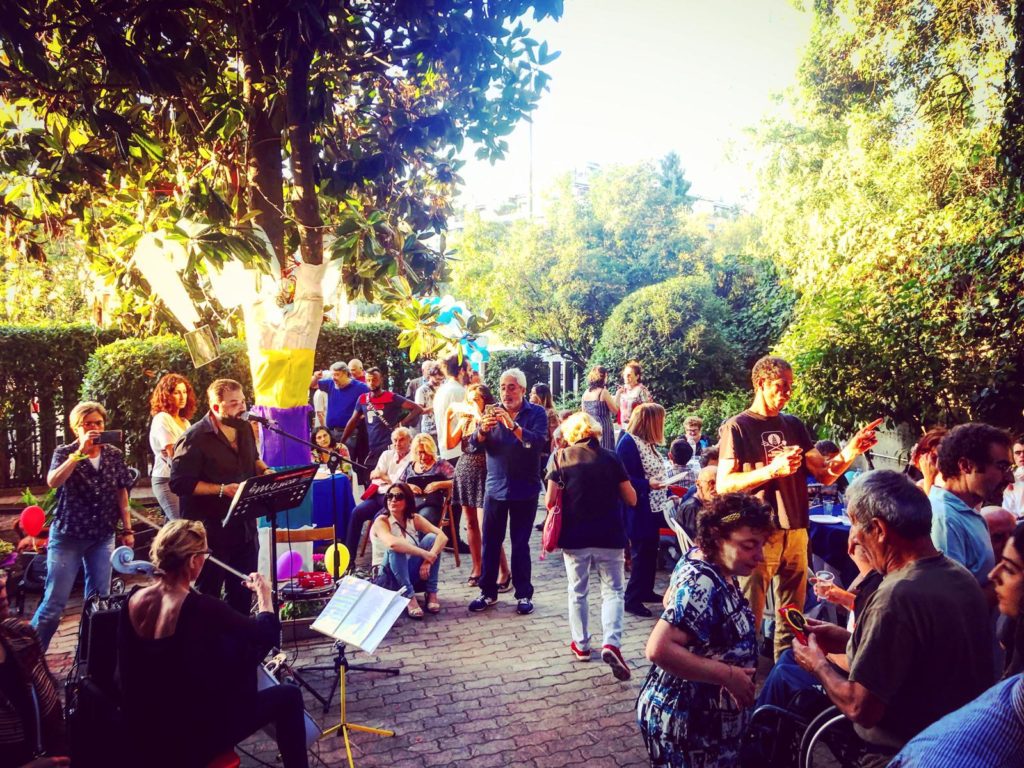 Tanti i bambini presenti allโevento che si sono divertiti โun mondoโ nel giardino di via Comano, con la musica, il truccabimbi e il gioco della pentolaccia, offerti direttamente dalla comunitร di Spes contra spem.